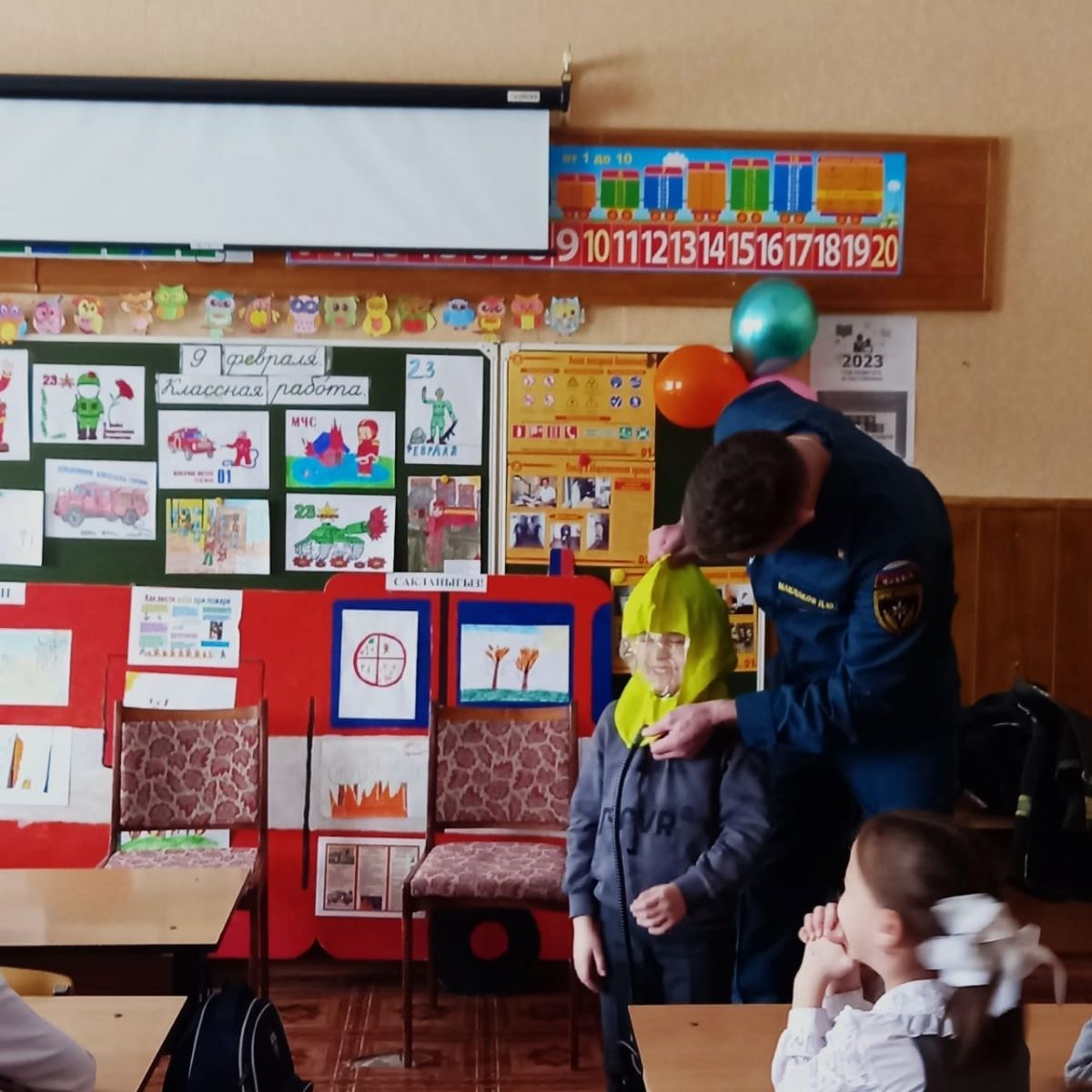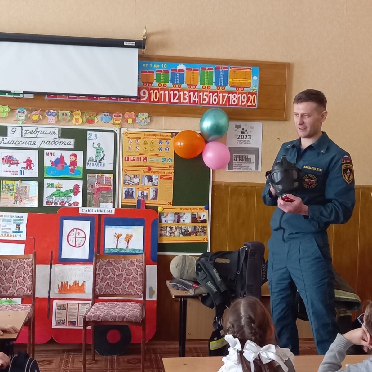 Встреча со спасателем МЧС и оператором ООН в 1г классе.