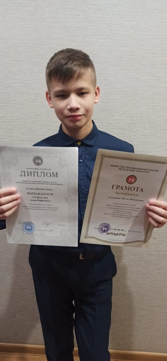Губайдуллин Амир , ученик 6в класса стал призёром регионального этапа ВОШ по английскому языку! Искренне поздравляем Айгуль Мизхатовну и Амира с победой!!!