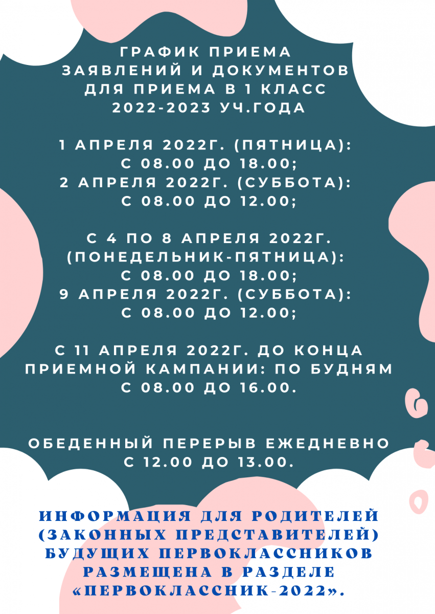 Внесены изменения в график приема заявлений и документов для приема в 1 класс 2022-2023 уч.года: