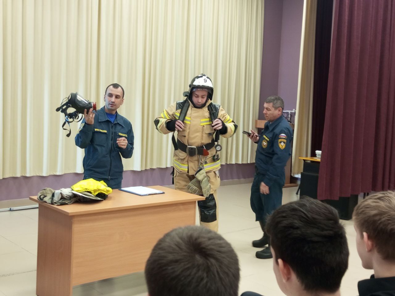 На открытый урок были приглашены сотрудники 9-ой пожарно- спасательной части г.Альметьевск. В ходе урока заместитель 9- ПСЧ Садыков Л.Н., рассказал детям о целях и задачах профессии спасателя, об основных составляющих системы защиты населения и территорий от чрезвычайных ситуаций, напомнил телефоны вызова экстренных служб. Учащиеся познакомились с историей возникновения гражданской обороны. В ходе урока учащимся продемонстрировали экипировку пожарного спасателя. Показали в деле работу баллонов для дыхательных аппаратов со сжатым воздухом.