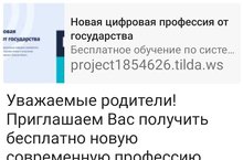 Уважаемые родители! Приглашаем Вас получить бесплатно новую современную профессию в рамках нацпроекта "Цифровая экономика". Для этого необходимо пройти по ссылке, зарегистрироваться, после этого выбрать курс с учётом Ваших интересов. -