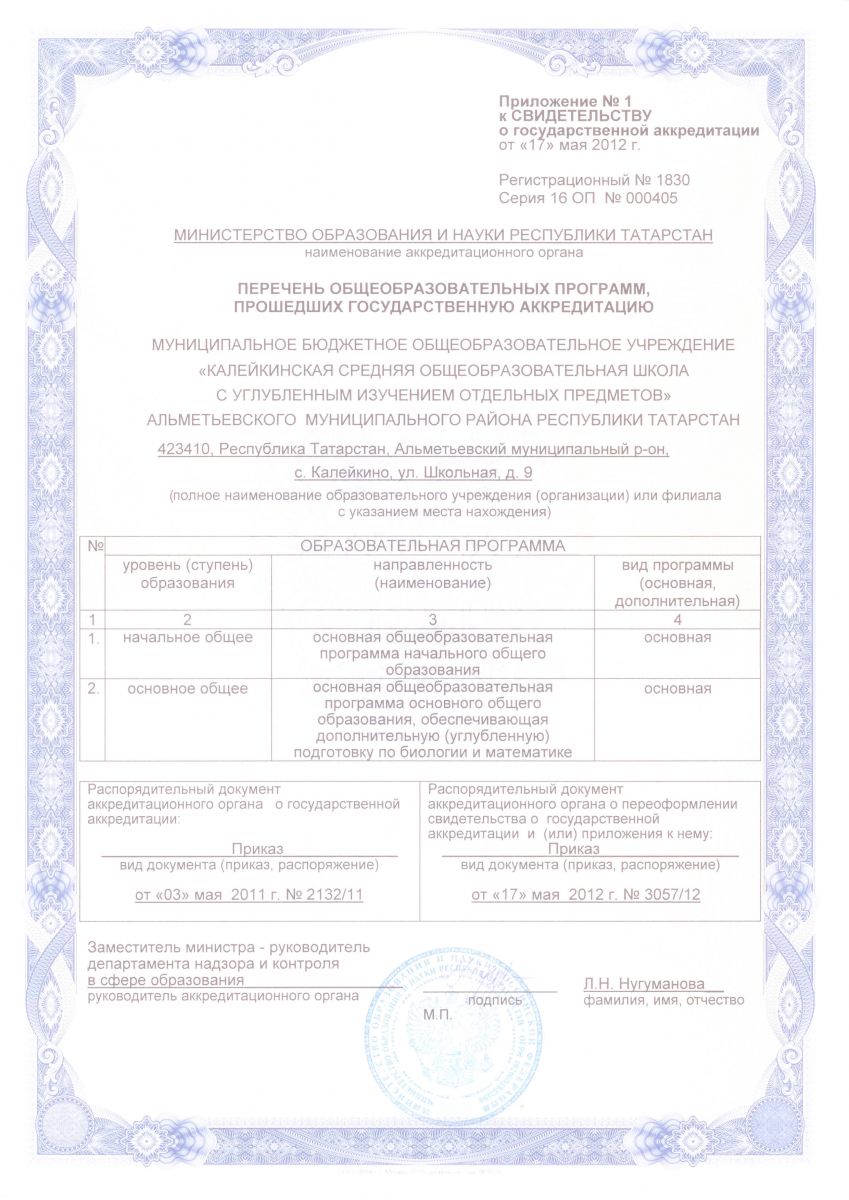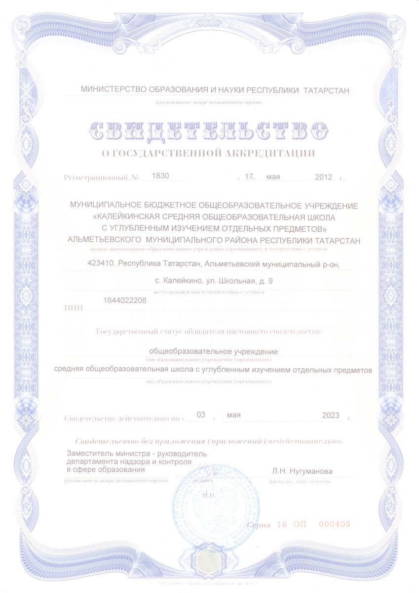 Муниципальное бюджетное общеобразовательное учреждение «Калейкинская средняя общеобразовательная школа с углубленным изучением отдельных предметов» Альметьевского муниципального района Республики Татарстан
