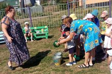 Сегодня в детском саду в гостях представитель сельского поселения Сураева С. с играми праздника "Ильин день".