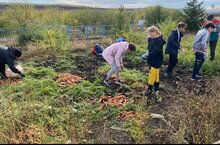 Мәктәп бакчасында кәзге уңыш җыю оештырылды.Укучылар тырышып эшләделәр.