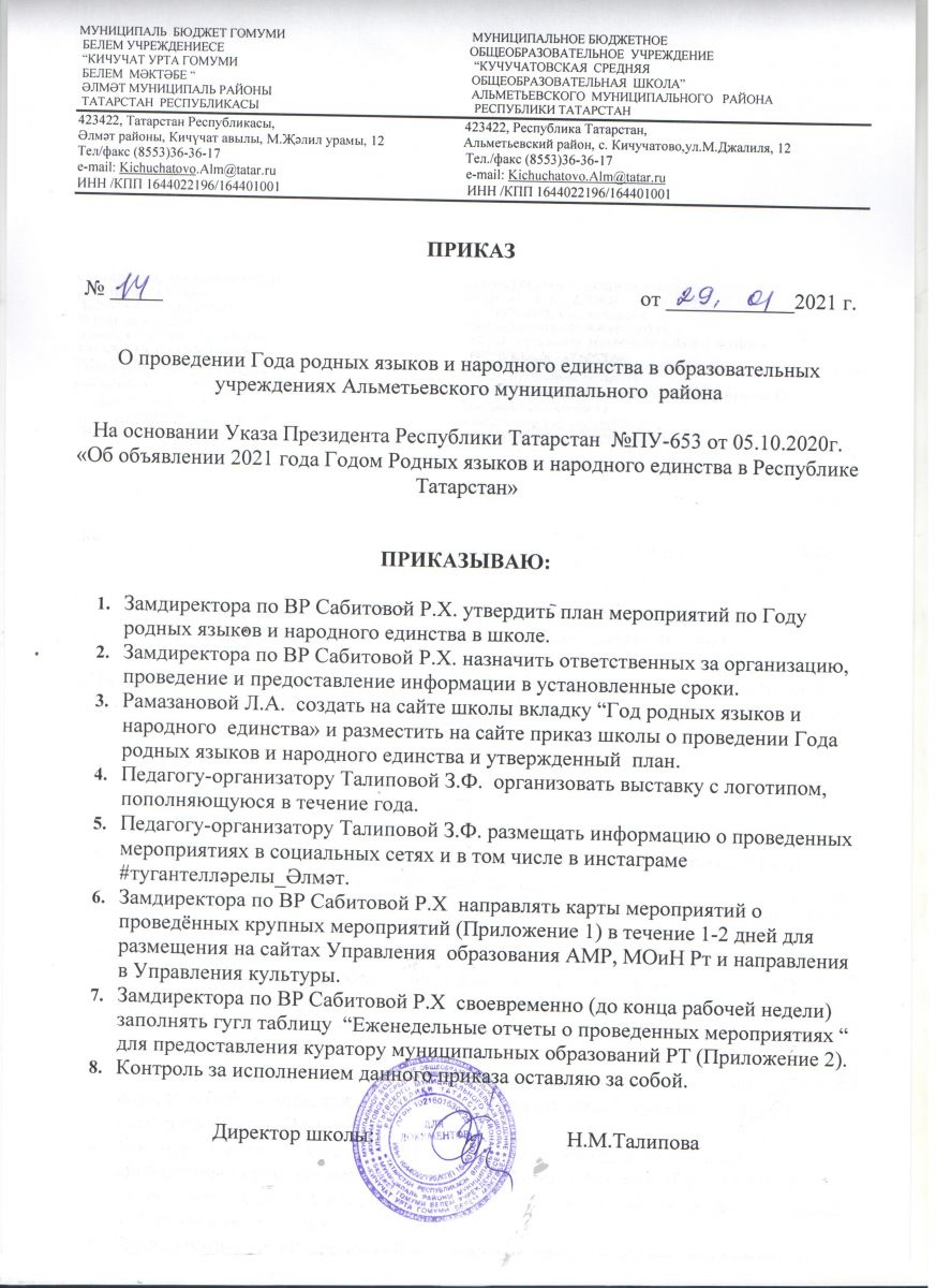 План мероприятий по проведению в 2021 году в Республике Татарстан Международного дня родного языка.