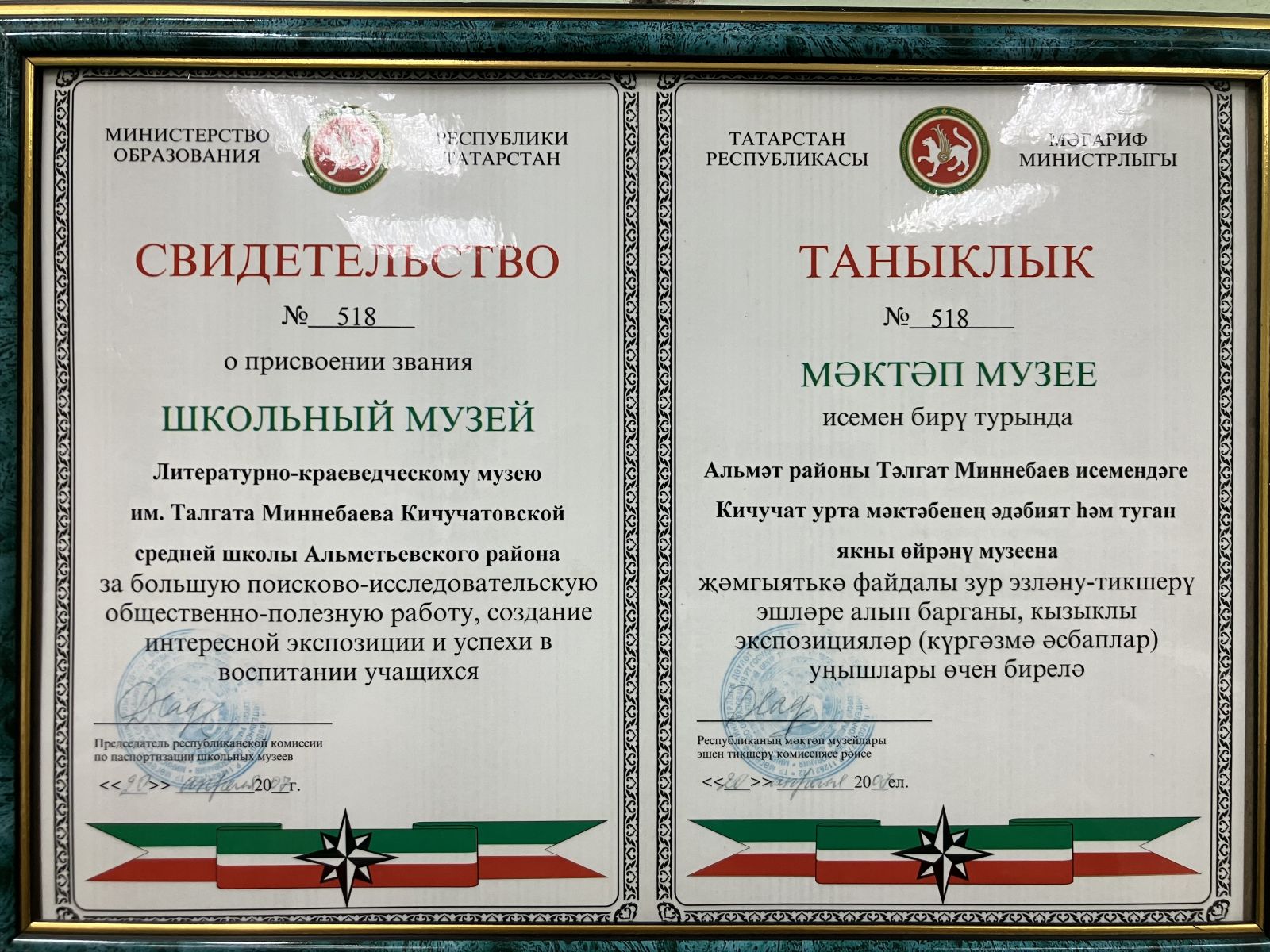 Муниципальное бюджетное общеобразовательное учреждение "Кичучатовская средняя общеобразовательная школа" Альметьевского муниципального района Республики Татарстан