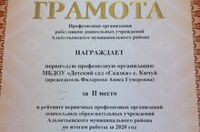 Грамота за 2 место в рейтинге профсоюзных организаций за 2020 год 04.03.2021