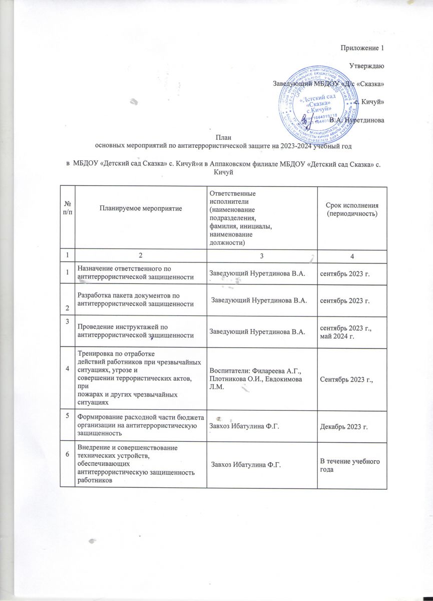 План основных мероприятий по антитеррористической защите на 2023-2024 г.