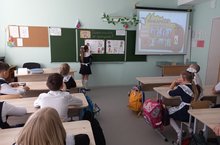 В 4 классе прошёл КВН по ПДД. Класс поделился на две команды, каждая команда выбрали себе название, эмблему и речёвку. Команды начали игру с приветствия и разминки. Пели частушки, участвовали в конкурсе знатоков дорожной азбуки, конкурсе капитанов, разгадывали кроссворды. Жюри подвели окончательные итоги, наградили победителей Дипломами «Знатоки правил дорожного движения»