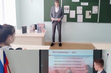 В 9 классе прошёл информационный классный час «Нет – Экстремизму!». Было сказано о проявлениях экстремизма в современном обществе. В ходе мероприятия были просмотрена презентация «Экстремизм в молодёжной среде». Во время беседы учащиеся вспомнили характерные черты терроризма и экстремизма, виды экстремизма. Также обучающиеся были проинформированы об ответственности за противоправные действия. В заключении ребята приняли участие в анкетировании на определение терпимости и уважения к чужому мнению.
