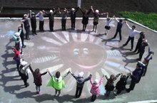 День защиты детей был придуман для того, чтобы напомнить нам, взрослым, о чистоте, искренности и наивности детской души. О том, что дети нуждаются в нашей любви и защите. Начальные классы школы провели конкурс рисунков на асфальте посвященный «Дню защиты детей». На мероприятии дети с огромным воодушевлением рисовали на асфальтной дорожке, на территории школы. На рисунках были изображены цветы, солнце, небо. Дети нарисовали огромное солнце, которое объединило их всех.