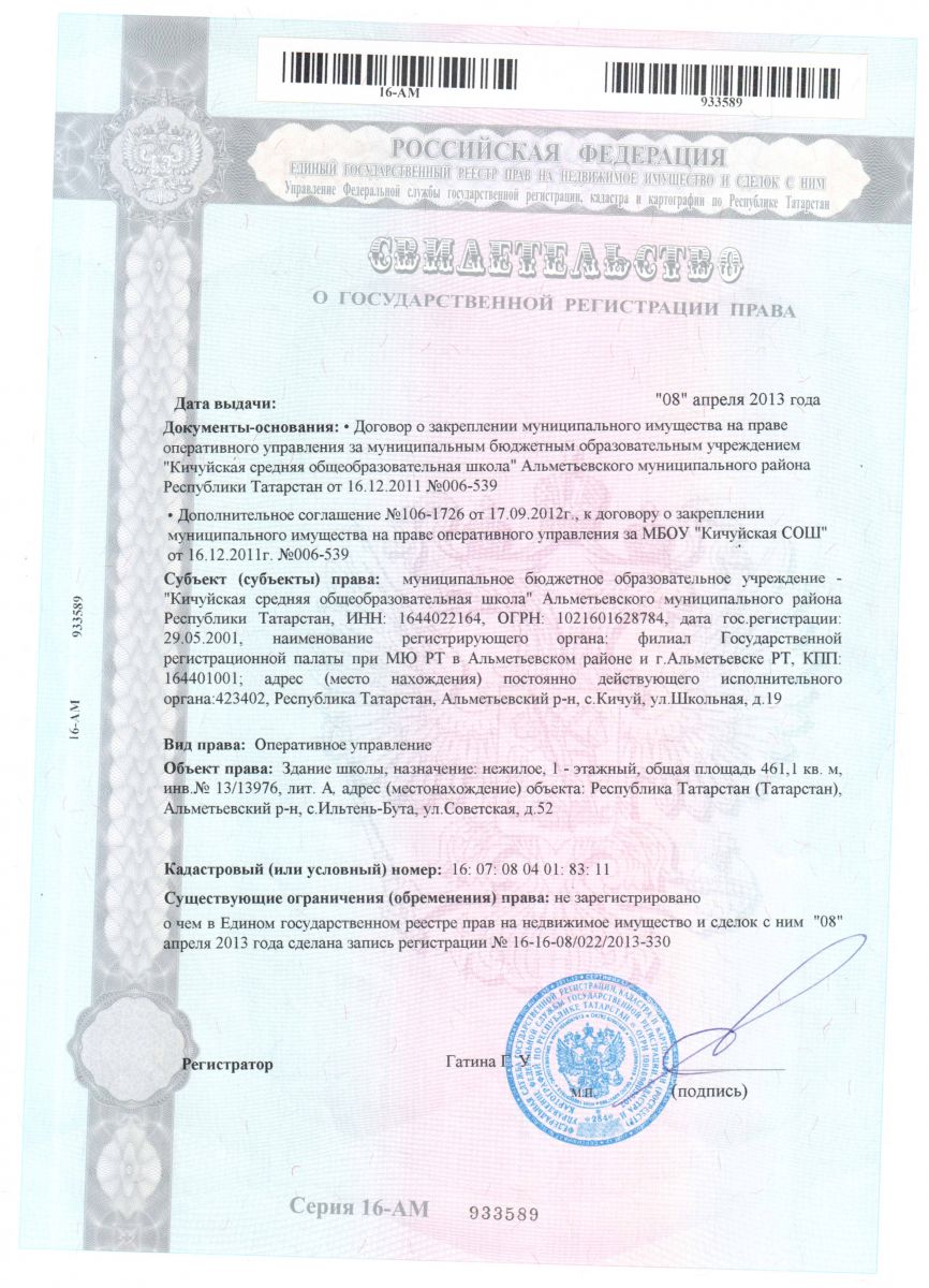 | Адрес: | 423402, Альметьевский район, с. Кичуй, ул. Школьная, д.19 |