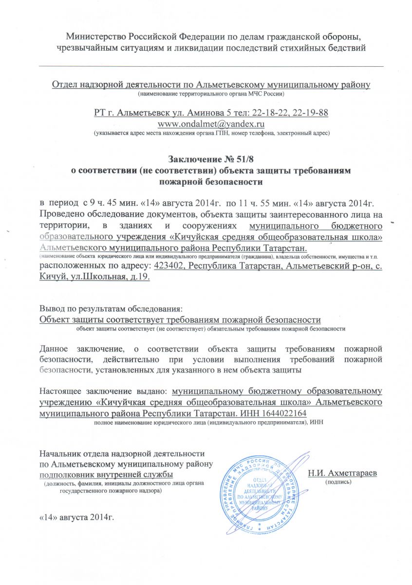 Заключение 51/8 о соответствии защиты требованиям пожарной безопасности   1 страница,  2 страница,3 станица.