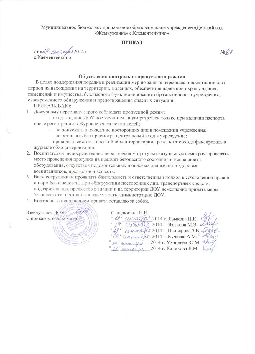 Приказ об усилении контрольно-пропускного режима в ДОУ