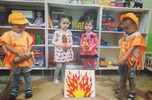 Цель: закрепить знания о том, что неосторожное обращение с огнем может вызвать пожар. Воспитание у детей уважения к труду пожарных.