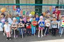 В честь дня ГИБДД в группе "Тамчыкай" прошло занятие на тему "Правила дорожного движения"