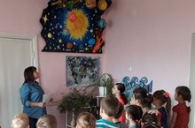 "Солнечная система". 12 апреля в нашей стране отмечается День космонавтики. С детьми закрепили знания о Космосе (звездах, созвездиях, солнечной системе, планетах). Дети познакомились с первым летчиком космонавтом Ю.А. Гагариным.