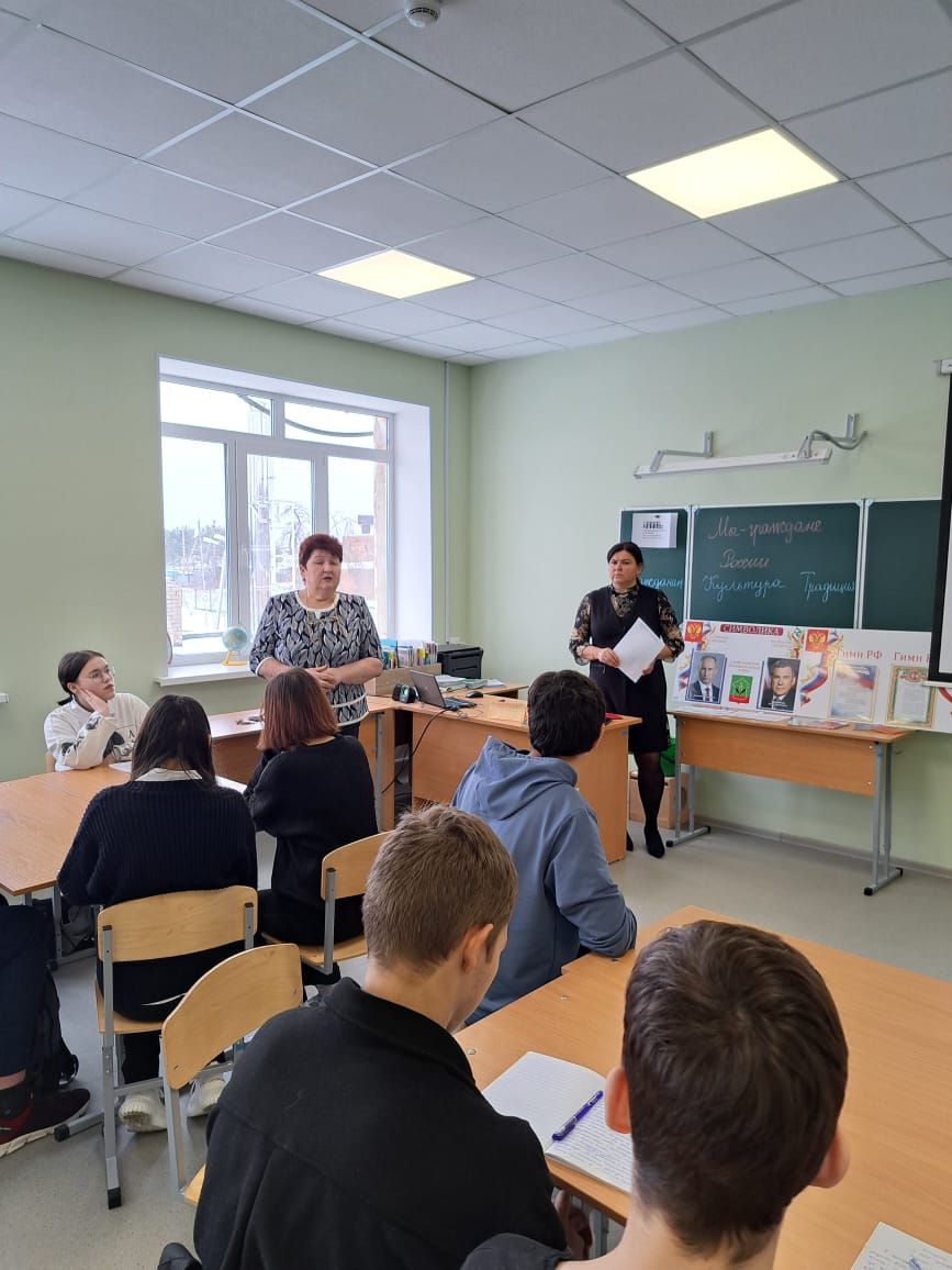 В МБОУ "Кульшариповская СОШ" прошёл Парламентскй урок 2023 (круглый стол) "Мы - граждане России!" с участием депутата сельского поселения Исрафиловой Г.Т.