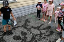 Рисовать на асфальте можно не только мелом, но и водой.Какой рисунок, в конце концов, появится на асфальте, совсем неважно, важен сам процесс ...