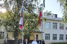 Учебная неделя начинается с церемонии поднятия государственнных флагов РФ и РТ под государтсвенные Гимны и внеурочных занятий "Разговоры о важном"