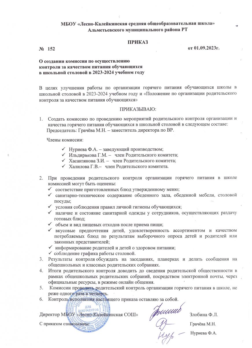 Приказ №226 от 25.12.2023 года "Об утверждении меню на 2-е полугодие 2023-2024 уч.года"