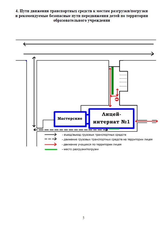 - Пути движения транспортных средств к местам разгрузки/погрузки и рекомендуемые безопасные пути передвижения детей по территории образовательного учреждения (перейти)