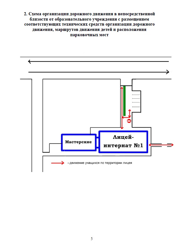 - Схема организации дорожного движения в непосредственной близости от образовательного учреждения с размещением соответствующих технических средств организации дорожного движения, маршрутов движения детей и расположения парковочных мест (перейти)