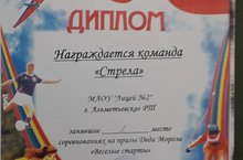 Команда 1А класса «Стрела» приняла участие в соревнованиях на Призы Деда Мороза «Весёлые старты», которые состоялись в ДОУ №51 «Радуга». От ДОУ выступала команда дошколят «Радуга». Дружба между нашим лицеем и ДОУ №51 продолжается.