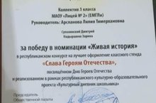 Учащиеся 1 А класса приняли участие и одержали победу в номинации «Живая история» в Республиканском конкурсе на лучшее оформление классного стенда «Слава Героям Отечества», посвящённом Дню Героев Отечества и в рамках республиканского культурно-образовательного проекта «Культурный дневник школьника».