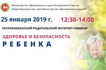 25 января 2019 года в 12:30 состоится Республиканский родительский интернет-семинар на тему: «Здоровье и безопасность ребенка».