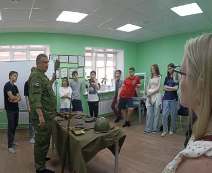 15 июня для членов лагеря труда и отдыха "Сириус" руководитель центра военно-патриотического воспитания и подготовки граждан к военной службе Еланский Евгений Геннадьевич на базе подросткового клуба "Заря" провел историческую экскурсию.