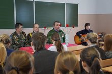 Филюшкин Виктор Иванович, гвардии старший лейтенант запаса, участник Чехословацкого конфликта, представил своих боевых товарищей. А основную нагрузку в беседе несли Семёнов Владимир Петрович, участник боевых действий в Афганистане, и Долгов Николай Владимирович, старший сержант запаса, участник боевых действий в Чечне. Очень доступно и доходчиво рассказывали они о своей службе в горячих точках, о товарищах, о нестандартных ситуациях (а может ли быть война стандартной?!), называя свою службу работой, отвечали на вопросы ребят.