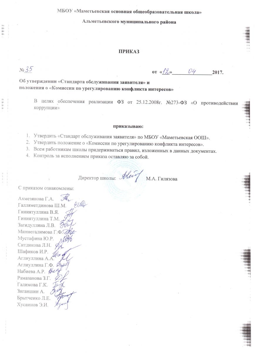 Антикоррупционная политика МБОУ Маметьевская ООШ