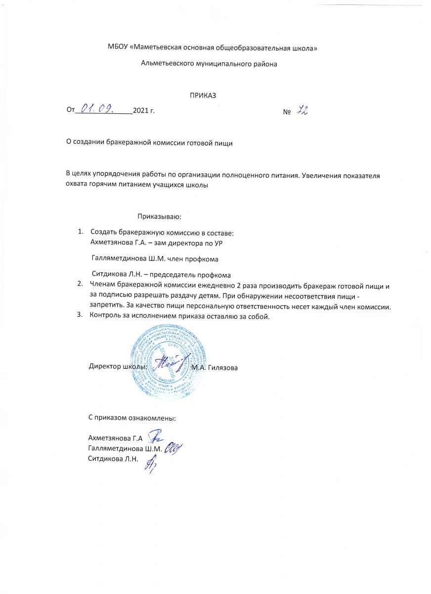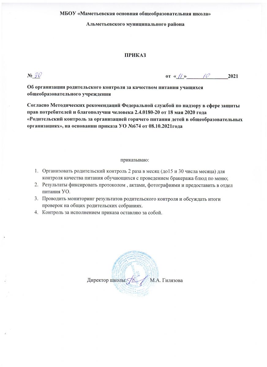 Приказ ОУ №90 от 11_10_2021г Об организации родительского контроля за качеством питания учащихся.