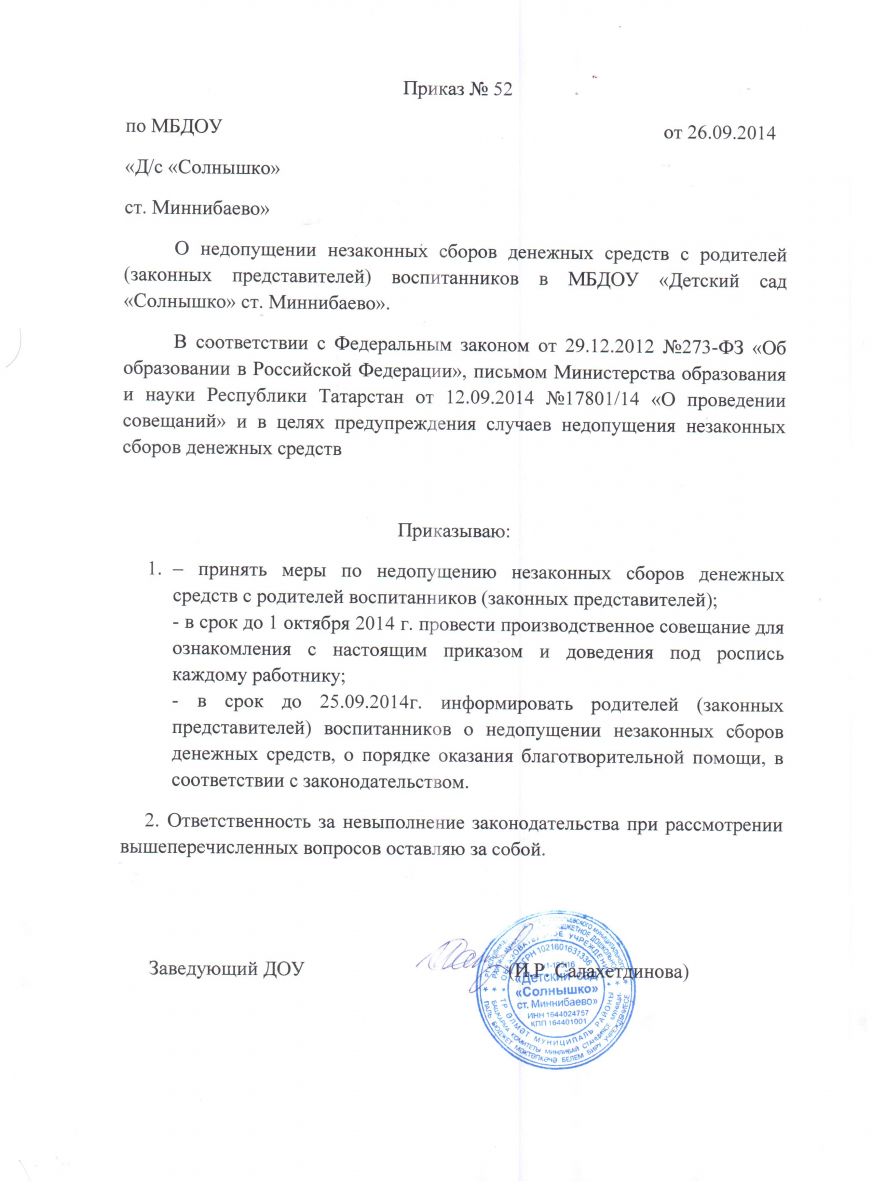 Приказ ДОУ "О мерах по противодействию коррупции"