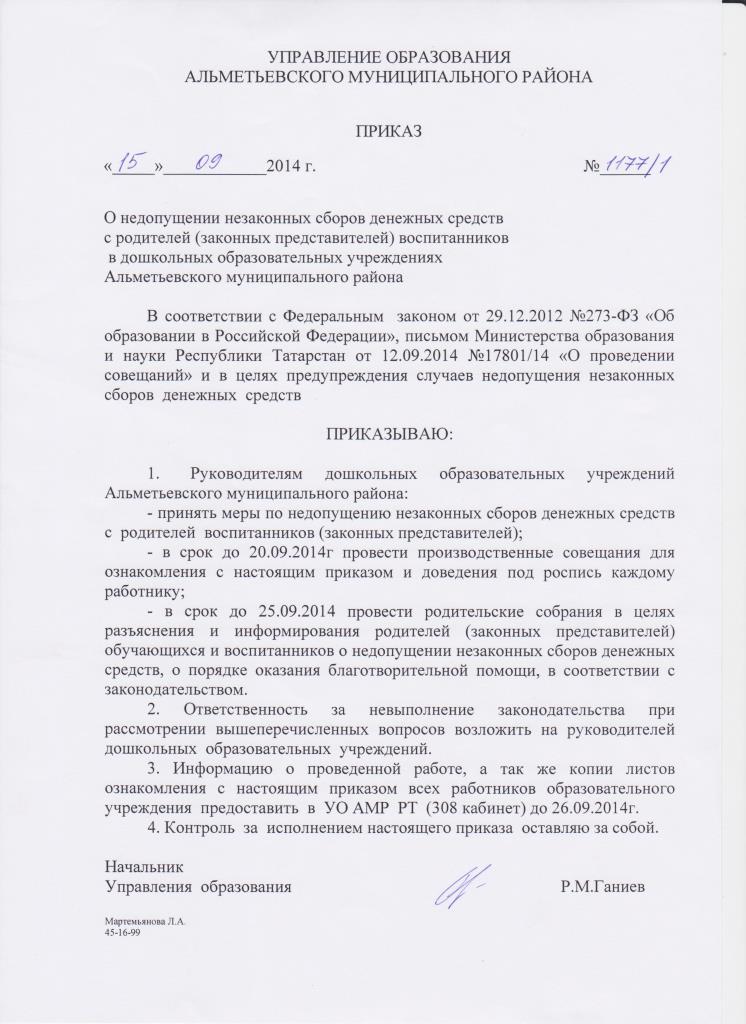 Приказы Управления образования АМР РТ