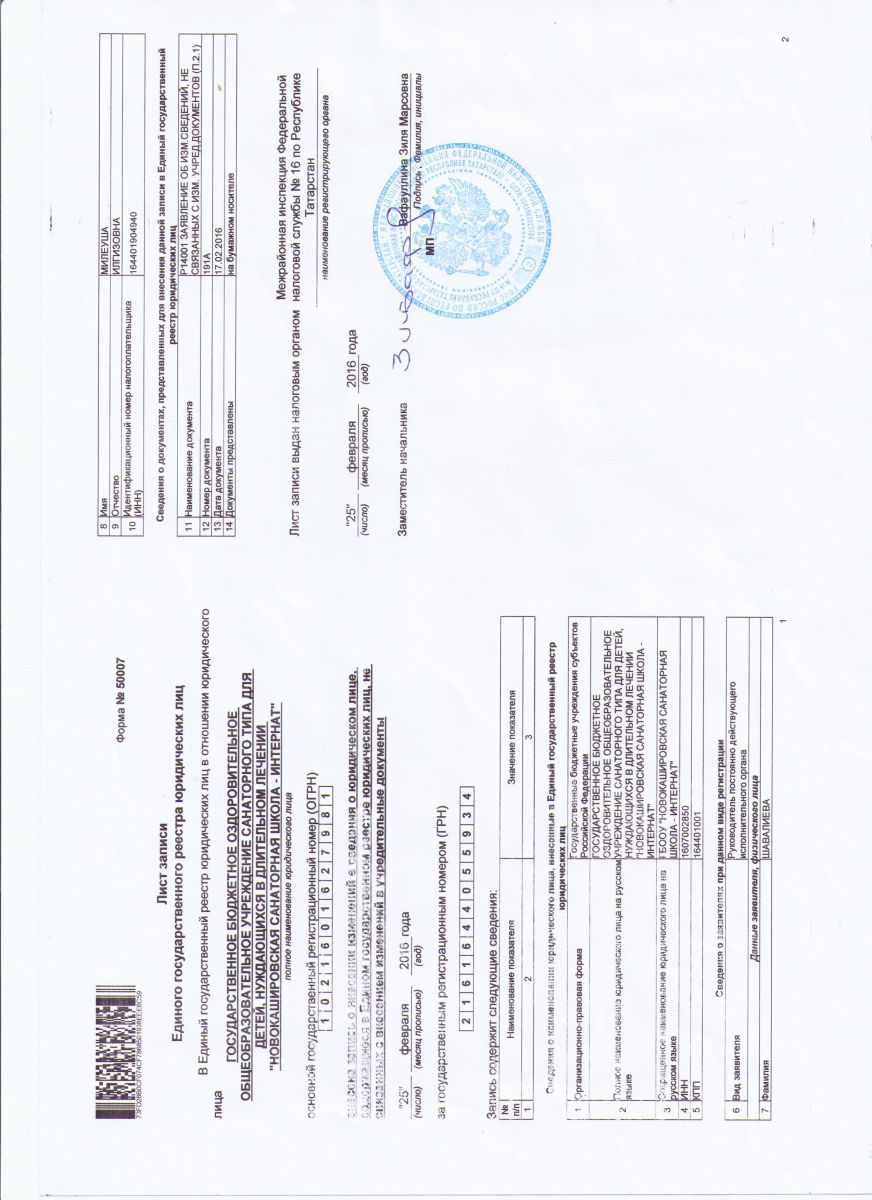 Короткое название: ГБООУ "Новокашировская санаторная школа - интернат"