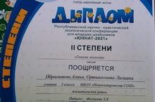 Поздравляем учеников 3-го класса Ибрагимову Алину и Ортыкхолову Лилиану с победой в Республиканском научно-практическом экологической конференции "Юннат - 2021" (педагог: Фазлыева З.Х.). Молодцы, желаем вам дальнейших успехов! 13.04.2021