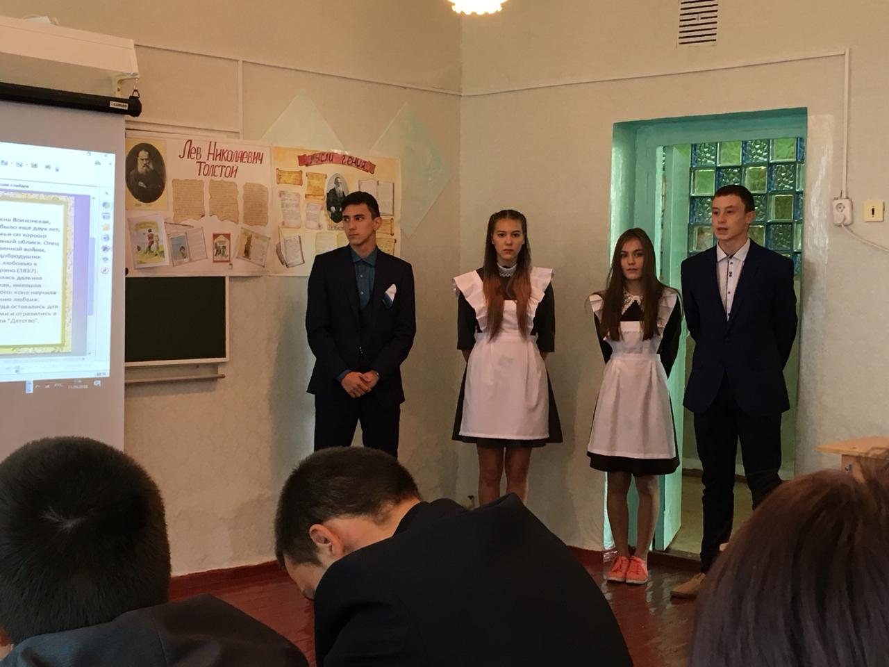 Ученики МБОУ "Новокашировская СОШ"провели классный час "По страницам великой жизни Л.Н.Толстого" (учителя: Гатауллина М.М, Исхакова А.А.) 10.09.2018