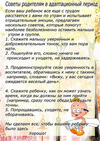 Советы родителям в адаптационный период