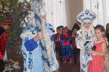 Дети пришли на представление в нарядных новогодних костюмах. Со сказочными героями Бабой Ягой, Снегурочкой, Дедом Морозом, Кикиморой, Снеговиком и поросенком Фунтиком они сразу оказались в праздничной атмосфере. Мероприятие прошло с песнями, танцами, хороводами вокруг нарядной ёлочки. Дед Мороз и Снегурочка порадовали детей подарками.