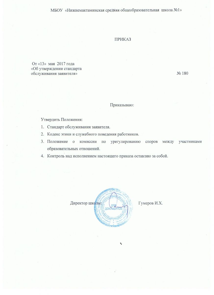 Приказ " Об утверждении стандарта обслуживания заявителя"