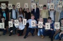 19 марта 2016 года в рамках конкурса "Эколидер" прошло внеклассное мероприятие "Час земли". Час Земли (Earth Hour) — это глобальная ежегодная международная акция, организованная Всемирным фондом дикой природы (World Wide Fund for Nature, WWF), которая проводится ежегодно в одну из последних суббот марта. Она заключается в том, что в этот день в назначенное время люди в разных странах мира на один час отключают свет и другие электроприборы.