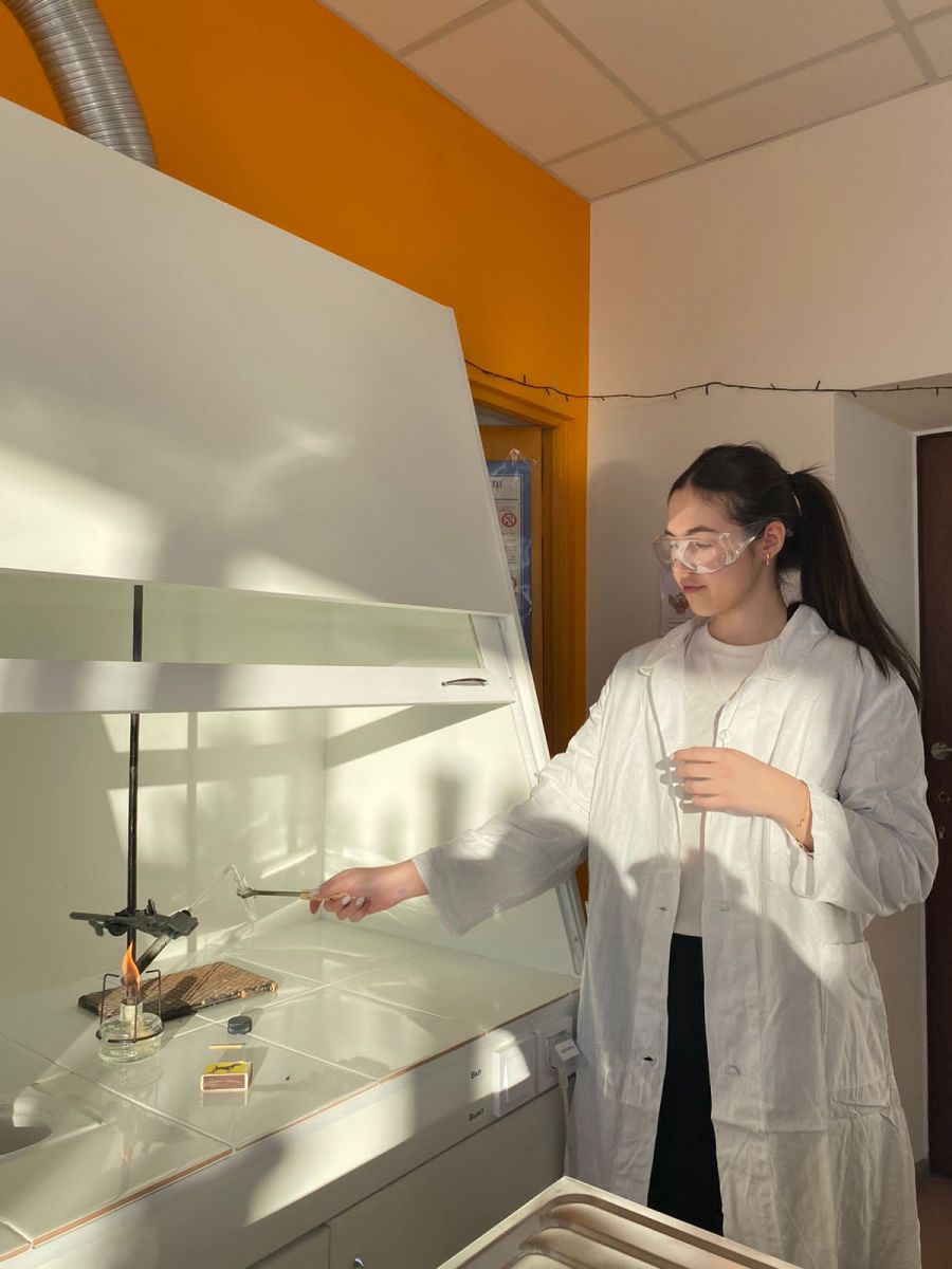 Учитель химии провела демонстрационные опыта с учащимися 10 класса для педагогов и учеников школы. -