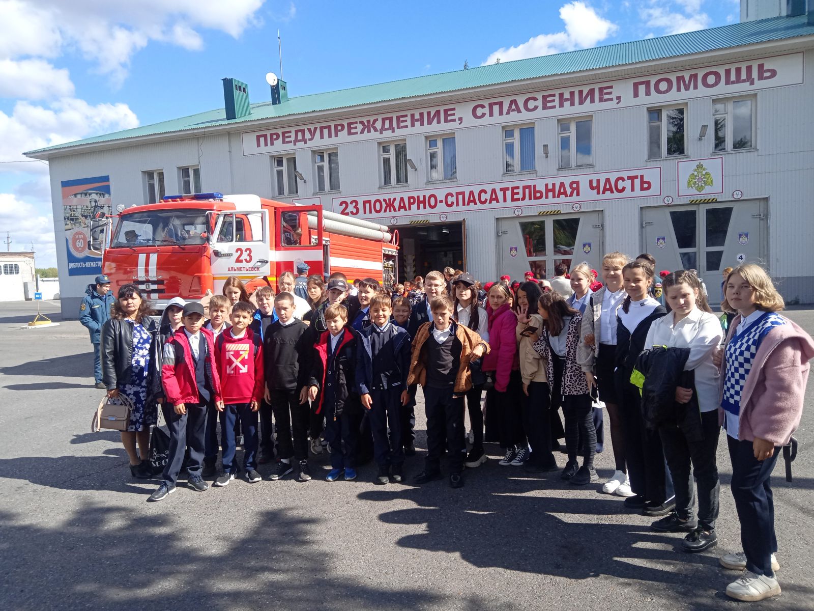 5 сентября в 10 ч. в ПЧС-23, проведен открытый урок ОБЖ с участием личного состава отряда. В мероприятии приняли участие учащиеся 6 «Б» класса МБОУ «Нижнемактаминская СОШ №2». Состоялось посещение музея истории пожарной охраны, знакомство с техникой и показательные выступления пожарной команды на огненно-штурмовой полосе. -