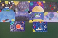 Выставка рисунков среди учащихся начальных классов,посвященная дню Космонавтики 08.04.2021