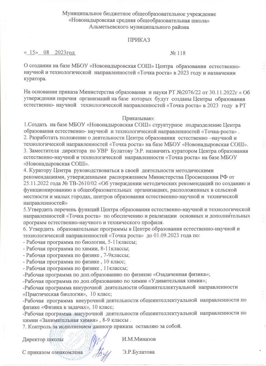 Положение о Центре образования естественно-научного и технологической направленностей "Точка роста".
