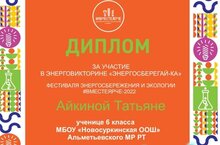 Учащиеся школы приняли активное учатие в энерговикторине. Диплом за участие в энерговикторине получила ученица 6 класса Айкина Т.О