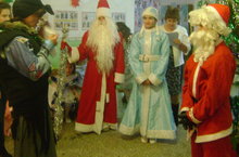 На Новогоднее представление 27 декабря собрались все ученики школы, их родители, бабушки, дедушки, сестренки и братишки. Участниками представления были: Клоуны, Метелица, Баба Яга, её внучка Девица Яга, в гости приехал из далёкой Америки Санта Клаус и, конечно же, пришли Дед Мороз и Снегурочка. Ребята водили хоровод, пели песни, танцевали, играли в игры с Дедом Морозом и Метелицей.