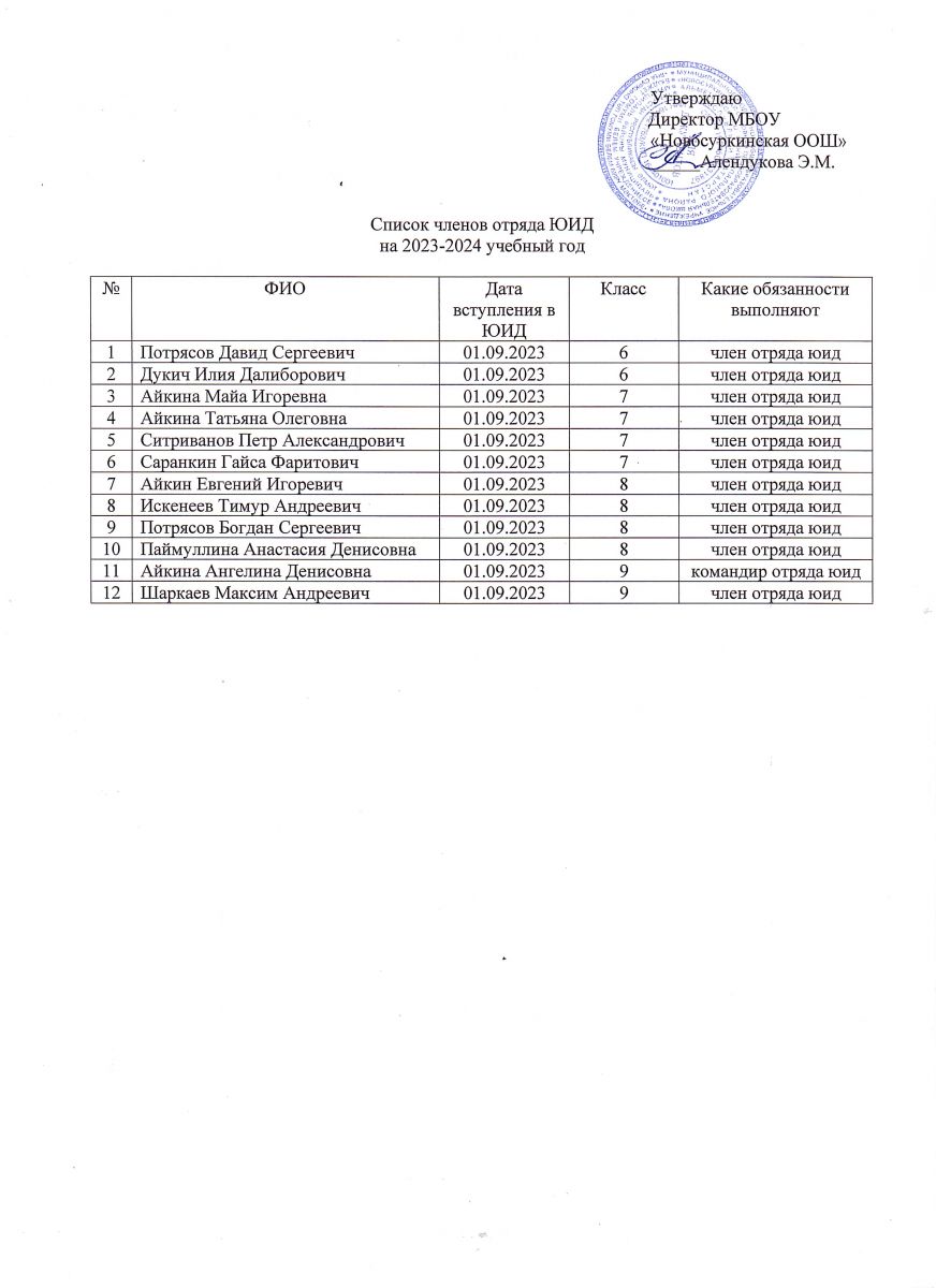 Спивок членов отряда ЮИД на 2023-2024 учебный год